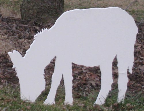 This beautifully designed donkey silhouette, grazing in the field unaware of the miracle happening near him adds so much to the peaceful feeling of this outdoor nativity display. I added the donkey to 'MyNativity' in 2009. He is cut from the same durable, UV protected, solid, marine grade PVC I use for the nativity.