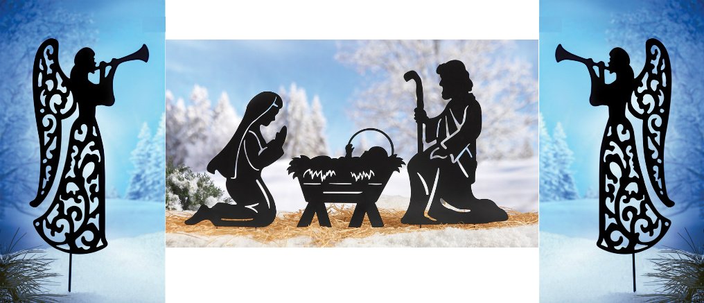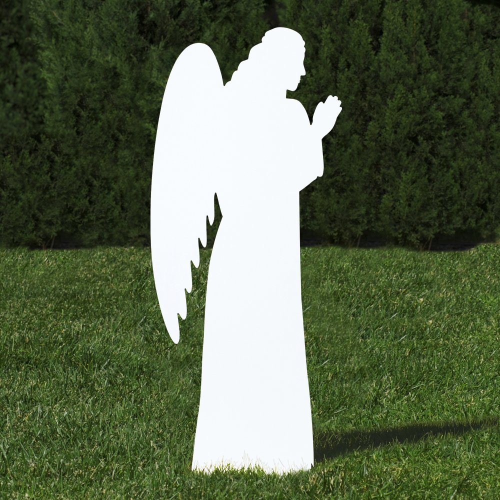 Includes 1 white outdoor nativity set figure and support stake Angel measures 18″ wide x 36″ high Made of all-weather, fade-resistant PVC plastic; Crafted in California, USA Designed to withstand rain, snow, harsh sunlight, and strong winds Add to Outdoor Nativity Store's Silhouette Outdoor Nativity Set - Holy Family Scene