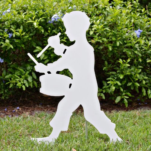 Beautiful silhouette style Drummer Boy that complements any yard without looking overly commercial. The drummer boy is constructed of 1/2" marine grade plastic sheet that cannot rot or delaminate and never requires painting. Measure 27" tall x 17.5" wide x 1/2" thick . Quick and simple assembly. Simply locate your stake and slide the drummer boy on. Show off the reason for the season with this classic outdoor nativity set. Matches with standard nativity set