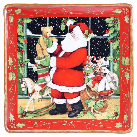 Certified International Santa's Workshop Square Platter, 12.5", Multicolor