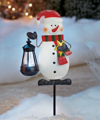 Solar Lighted Lantern Snowman Garden Welcome Stake Christmas Festive Holiday Outdoor Yard Decoration